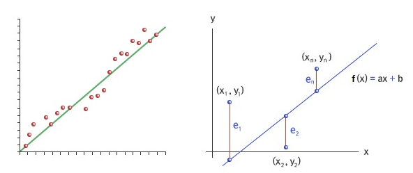 최소제곱법은 주어진 데이터 집합 에 대해 다음과 같은 1차 방정식 을 찾는 과정입니다.